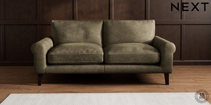 6.12.1 Buy Palermo Relaxed Sit 3 Seater Sofa Plush Chenille Moss Green Tapered - Dark from the Next UK online shop Click here to use our accessible website
