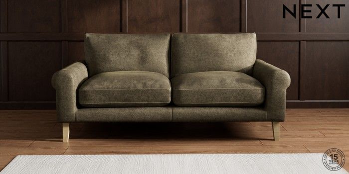 6.12.1 Buy Palermo Relaxed Sit 3 Seater Sofa Plush Chenille Moss Green Tapered - Light from the Next UK online shop Click here to use our accessible website