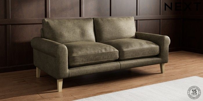 7.0.3 Buy Palermo Relaxed Sit 3 Seater Sofa Plush Chenille Moss Green Tapered - Light from the Next UK online shop Click here to use our accessible website