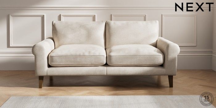 6.12.1 Buy Palermo Relaxed Sit 3 Seater Sofa Plush Chenille Oyster Tapered - Mid from the Next UK online shop Click here to use our accessible website