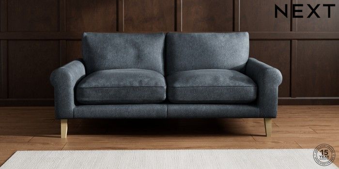 6.12.1 Buy Palermo Relaxed Sit 3 Seater Sofa Plush Chenille Slate Blue Tapered - Light from the Next UK online shop Click here to use our accessible website