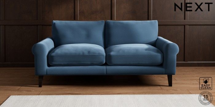 6.12.1 Buy Palermo Relaxed Sit 3 Seater Sofa Plush Velvet Easy Clean Airforce Blue Tapered - Dark from the Next UK online shop Click here to use our accessible website