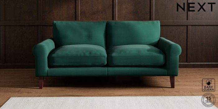 6.12.1 Buy Palermo Relaxed Sit 3 Seater Sofa Plush Velvet Easy Clean Bottle Green Tapered - Dark Brown from the Next UK online shop Click here to use our accessible website