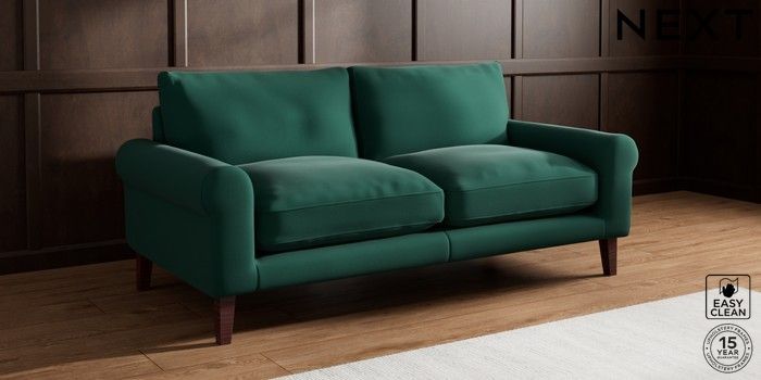 7.0.3 Buy Palermo Relaxed Sit 3 Seater Sofa Plush Velvet Easy Clean Bottle Green Tapered - Dark Brown from the Next UK online shop Click here to use our accessible website