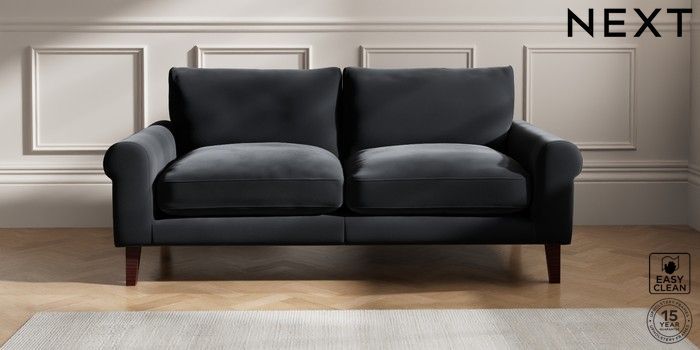 6.12.1 Buy Palermo Relaxed Sit 3 Seater Sofa Plush Velvet Easy Clean Charcoal Grey Tapered - Dark Brown from the Next UK online shop Click here to use our accessible website