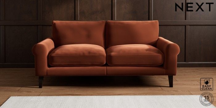 6.12.1 Buy Palermo Relaxed Sit 3 Seater Sofa Plush Velvet Easy Clean Ginger Orange Tapered - Dark from the Next UK online shop Click here to use our accessible website