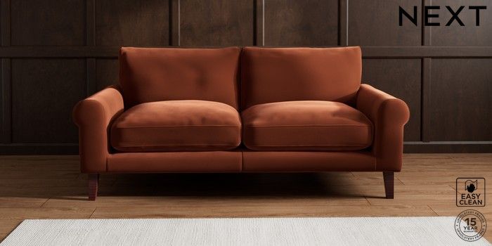 6.12.1 Buy Palermo Relaxed Sit 3 Seater Sofa Plush Velvet Easy Clean Ginger Orange Tapered - Dark Brown from the Next UK online shop Click here to use our accessible website