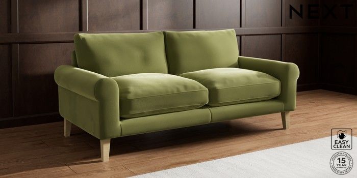 7.0.3 Buy Palermo Relaxed Sit 3 Seater Sofa Plush Velvet Easy Clean Mid Olive Green Tapered - Light from the Next UK online shop Click here to use our accessible website