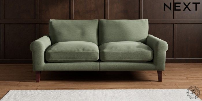 6.12.1 Buy Palermo Relaxed Sit 3 Seater Sofa Relaxed Linen Look Dark Green Tapered - Dark Brown from the Next UK online shop Click here to use our accessible website