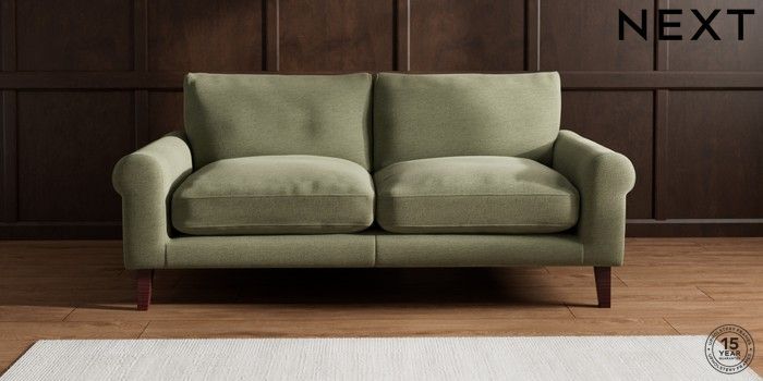 6.12.1 Buy Palermo Relaxed Sit 3 Seater Sofa Ripple Chenille Mid Moss Green Tapered - Dark Brown from the Next UK online shop Click here to use our accessible website