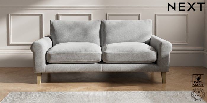 6.12.1 Buy Palermo Relaxed Sit 3 Seater Sofa Tweedy Blend Easy Clean Light Silver Grey Tapered - Light from the Next UK online shop Click here to use our accessible website