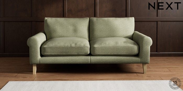 6.12.1 Buy Palermo Relaxed Sit 3 Seater Sofa Tweedy Chenille Mid Moss Green Tapered - Light from the Next UK online shop Click here to use our accessible website