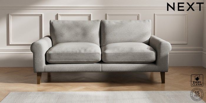 6.12.1 Buy Palermo Relaxed Sit 3 Seater Sofa Woven Chenille Easy Clean Light Grey Tapered - Mid from the Next UK online shop Click here to use our accessible website