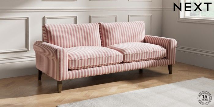 7.3.1 Buy Palermo Relaxed Sit 4 Seater Sofa Bold Chenille Stripe Dark Pink Tapered - Mid from the Next UK online shop Click here to use our accessible website