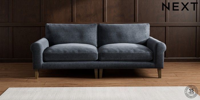 6.12.1 Buy Palermo Relaxed Sit 4 Seater Sofa Boucle Chenille Dark Slate Blue Tapered - Mid from the Next UK online shop Click here to use our accessible website
