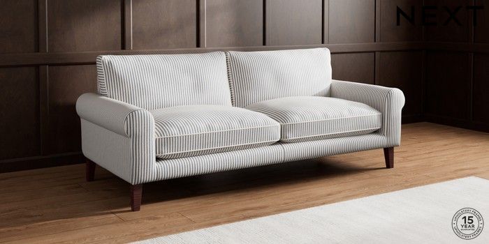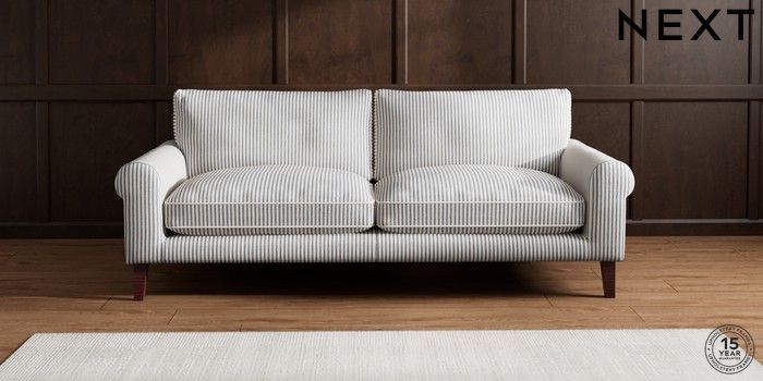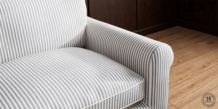 7.3.1 Buy Palermo Relaxed Sit 4 Seater Sofa Chenille Stripe Slate Blue Tapered - Dark Brown from the Next UK online shop Click here to use our accessible website