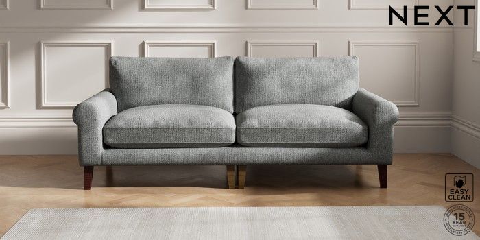 6.12.1 Buy Palermo Relaxed Sit 4 Seater Sofa Chunky Boucle Easy Clean Mid Grey Tapered - Dark Brown from the Next UK online shop Click here to use our accessible website
