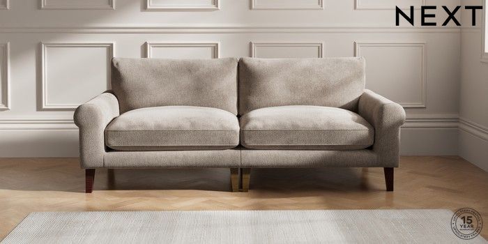 6.12.1 Buy Palermo Relaxed Sit 4 Seater Sofa Chunky Chenille Light Dove Tapered - Dark Brown from the Next UK online shop Click here to use our accessible website