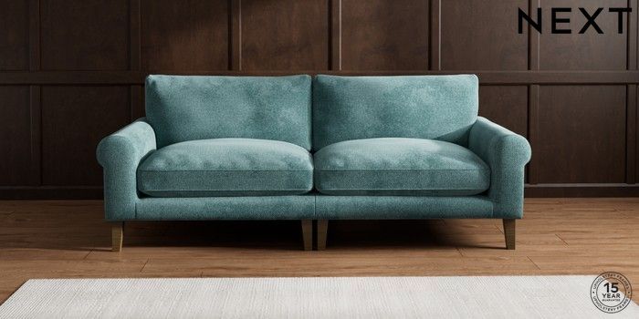6.12.1 Buy Palermo Relaxed Sit 4 Seater Sofa Chunky Chenille Mid Teal Green Tapered - Mid from the Next UK online shop Click here to use our accessible website