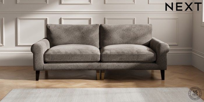 6.12.1 Buy Palermo Relaxed Sit 4 Seater Sofa Chunky Chenille Mink Brown Tapered - Dark from the Next UK online shop Click here to use our accessible website