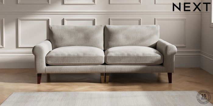 6.12.1 Buy Palermo Relaxed Sit 4 Seater Sofa Chunky Weave Dove Grey Tapered - Dark Brown from the Next UK online shop Click here to use our accessible website
