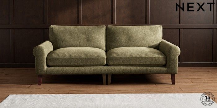 6.12.1 Buy Palermo Relaxed Sit 4 Seater Sofa Cotswold Chenille Dark Green Tapered - Dark Brown from the Next UK online shop Click here to use our accessible website