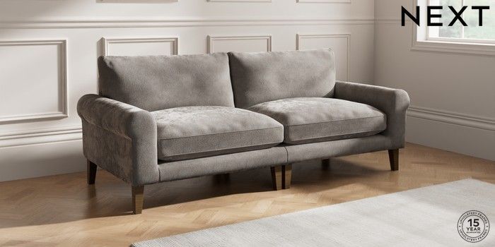 7.0.3 Buy Palermo Relaxed Sit 4 Seater Sofa Distressed Velour French Grey Tapered - Mid from the Next UK online shop Click here to use our accessible website