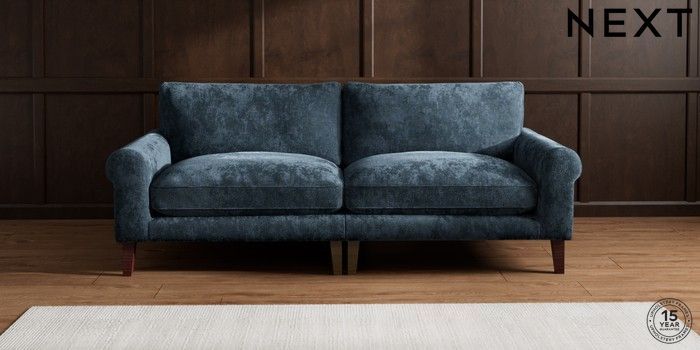 6.12.1 Buy Palermo Relaxed Sit 4 Seater Sofa Distressed Velour Midnight Blue Tapered - Dark Brown from the Next UK online shop Click here to use our accessible website