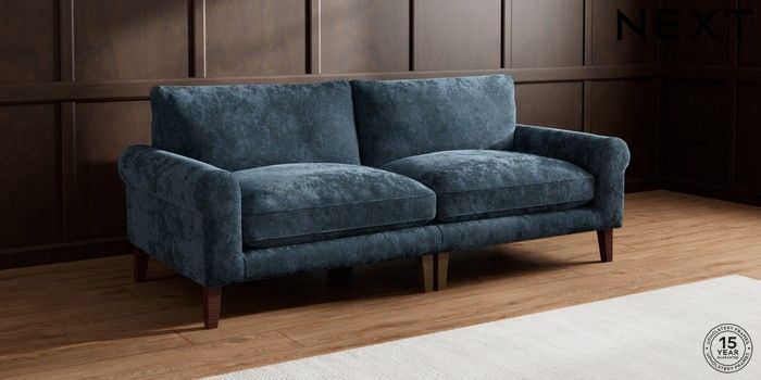 7.0.3 Buy Palermo Relaxed Sit 4 Seater Sofa Distressed Velour Midnight Blue Tapered - Dark Brown from the Next UK online shop Click here to use our accessible website