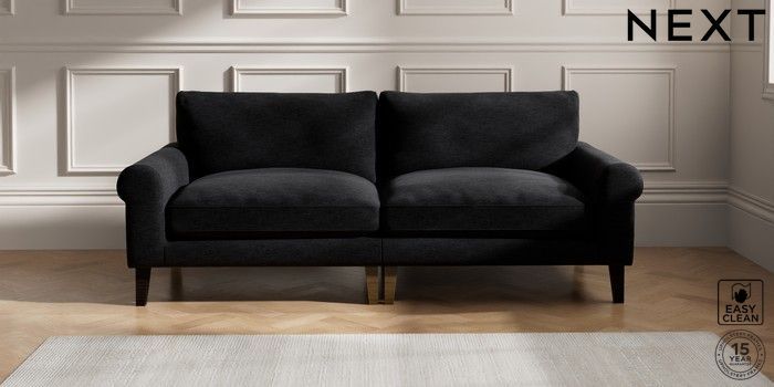 6.12.1 Buy Palermo Relaxed Sit 4 Seater Sofa Fine Chenille Easy Clean Black Tapered - Dark from the Next UK online shop Click here to use our accessible website
