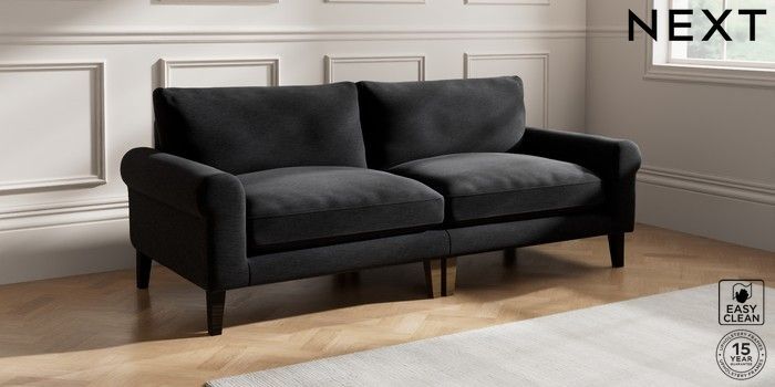 7.0.3 Buy Palermo Relaxed Sit 4 Seater Sofa Fine Chenille Easy Clean Black Tapered - Dark from the Next UK online shop Click here to use our accessible website
