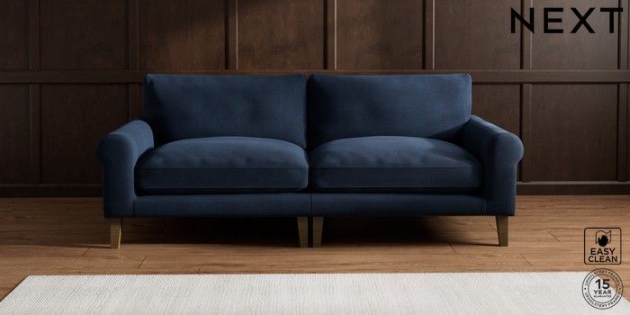 6.12.1 Buy Palermo Relaxed Sit 4 Seater Sofa Fine Chenille Easy Clean Dark Navy Blue Tapered - Mid from the Next UK online shop Click here to use our accessible website