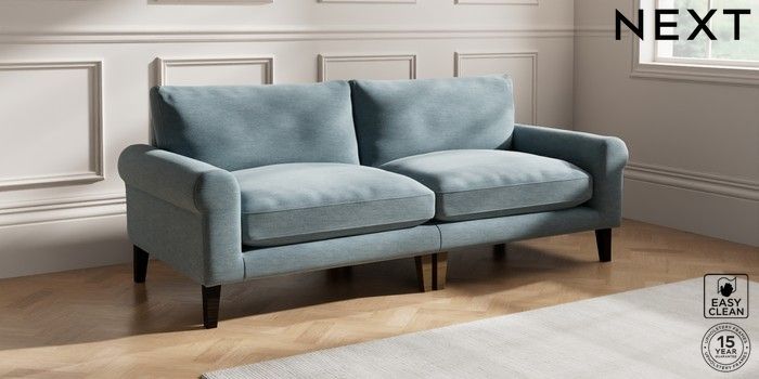 7.0.3 Buy Palermo Relaxed Sit 4 Seater Sofa Fine Chenille Easy Clean Mid Blue Tapered - Dark from the Next UK online shop Click here to use our accessible website