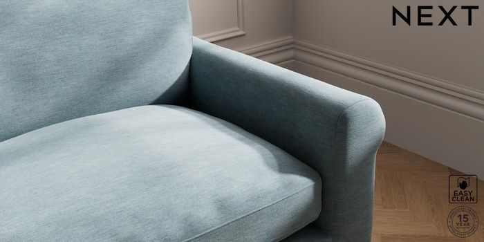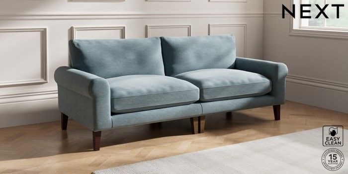 7.0.3 Buy Palermo Relaxed Sit 4 Seater Sofa Fine Chenille Easy Clean Mid Blue Tapered - Dark Brown from the Next UK online shop Click here to use our accessible website