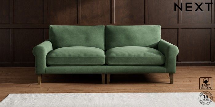 6.12.1 Buy Palermo Relaxed Sit 4 Seater Sofa Fine Chenille Easy Clean Mid Khaki Green Tapered - Mid from the Next UK online shop Click here to use our accessible website