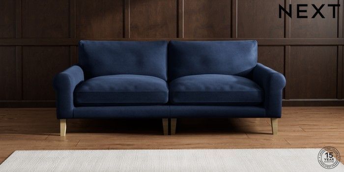 6.12.1 Buy Palermo Relaxed Sit 4 Seater Sofa Luxe Chenille Navy Blue Tapered - Light from the Next UK online shop Click here to use our accessible website