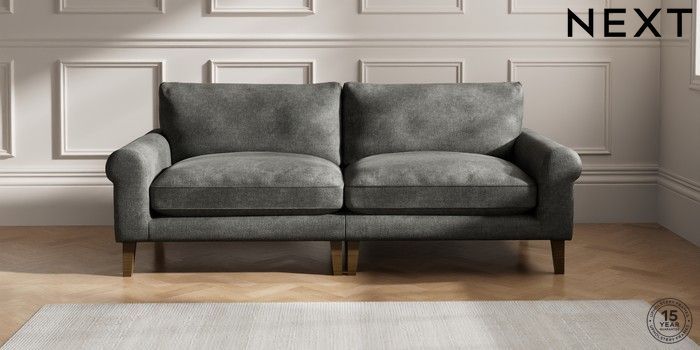 6.12.1 Buy Palermo Relaxed Sit 4 Seater Sofa Plush Chenille Dark Grey Tapered - Mid from the Next UK online shop Click here to use our accessible website
