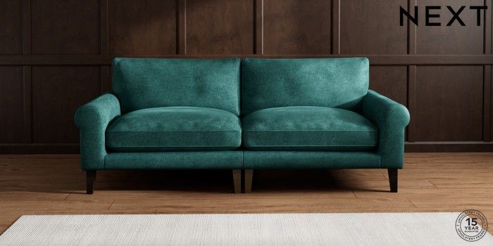 6.12.1 Buy Palermo Relaxed Sit 4 Seater Sofa Plush Chenille Dark Teal Green Tapered - Dark from the Next UK online shop Click here to use our accessible website