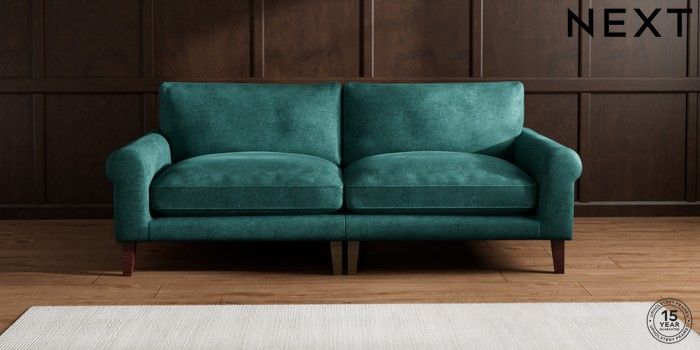 6.12.1 Buy Palermo Relaxed Sit 4 Seater Sofa Plush Chenille Dark Teal Green Tapered - Dark Brown from the Next UK online shop Click here to use our accessible website