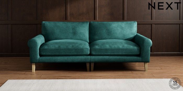 6.12.1 Buy Palermo Relaxed Sit 4 Seater Sofa Plush Chenille Dark Teal Green Tapered - Light from the Next UK online shop Click here to use our accessible website