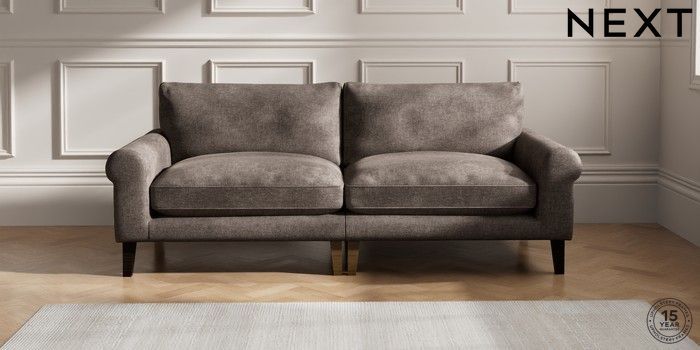 6.12.1 Buy Palermo Relaxed Sit 4 Seater Sofa Plush Chenille Mink Brown Tapered - Dark from the Next UK online shop Click here to use our accessible website