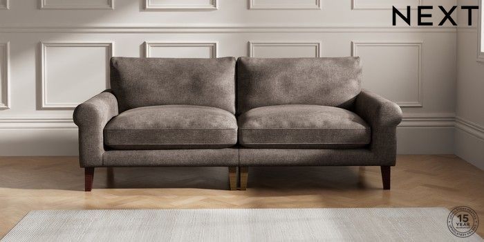 6.12.1 Buy Palermo Relaxed Sit 4 Seater Sofa Plush Chenille Mink Brown Tapered - Dark Brown from the Next UK online shop Click here to use our accessible website