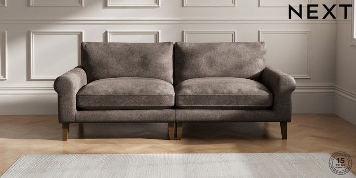 6.12.1 Buy Palermo Relaxed Sit 4 Seater Sofa Plush Chenille Mink Brown Tapered - Mid from the Next UK online shop Click here to use our accessible website
