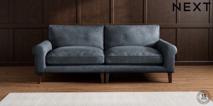 6.12.1 Buy Palermo Relaxed Sit 4 Seater Sofa Plush Chenille Slate Blue Tapered - Dark Brown from the Next UK online shop Click here to use our accessible website