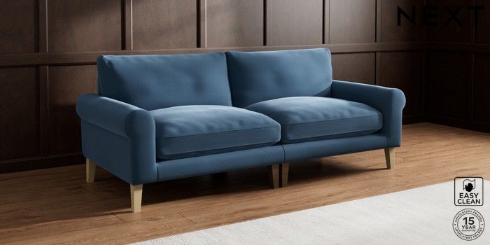 7.0.3 Buy Palermo Relaxed Sit 4 Seater Sofa Plush Velvet Easy Clean Airforce Blue Tapered - Light from the Next UK online shop Click here to use our accessible website