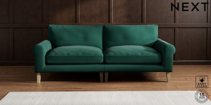 6.12.1 Buy Palermo Relaxed Sit 4 Seater Sofa Plush Velvet Easy Clean Bottle Green Tapered - Light from the Next UK online shop Click here to use our accessible website