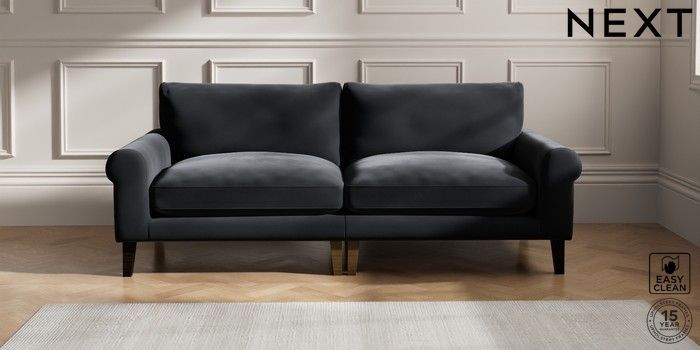 6.12.1 Buy Palermo Relaxed Sit 4 Seater Sofa Plush Velvet Easy Clean Charcoal Grey Tapered - Dark from the Next UK online shop Click here to use our accessible website