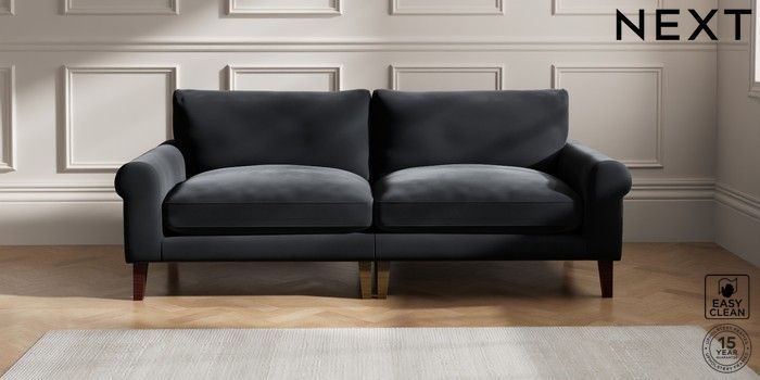 6.12.1 Buy Palermo Relaxed Sit 4 Seater Sofa Plush Velvet Easy Clean Charcoal Grey Tapered - Dark Brown from the Next UK online shop Click here to use our accessible website