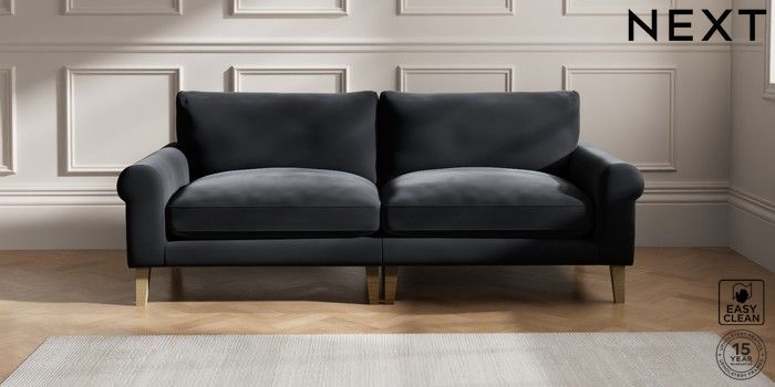 6.12.1 Buy Palermo Relaxed Sit 4 Seater Sofa Plush Velvet Easy Clean Charcoal Grey Tapered - Light from the Next UK online shop Click here to use our accessible website