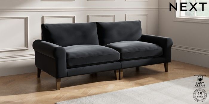 7.0.3 Buy Palermo Relaxed Sit 4 Seater Sofa Plush Velvet Easy Clean Charcoal Grey Tapered - Mid from the Next UK online shop Click here to use our accessible website